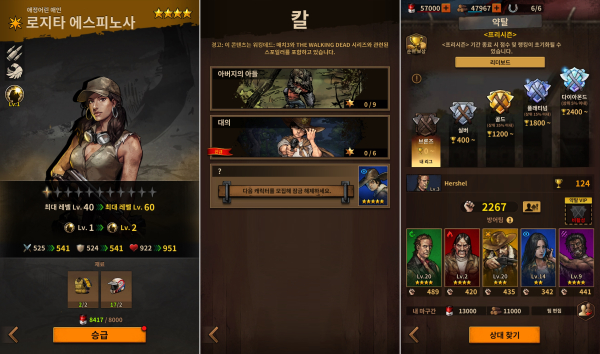기본 스토리 외에도 각 캐릭터 카드를 획득하면 그 캐릭터의 배경 설명과 과거 이야기가 담긴 새로운 스토리도 감상할 수 있다. 이 캐릭터별 스토리에선 원작에서 생략돼 제대로 다뤄지지 않았던 이야기를 접할 수 있기 때문에, 원작 워킹데드 팬들에겐 익숙하면서도 새로운 스토리와 경험을 선사함과 동시에 세계관도 한층 확장할 계획이다.