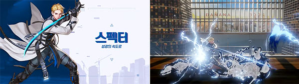 ▲스펙터는 전기가 흐르는 검을 통해, 감전 효과가 더해져 추가 데미지와 함께 경직을 부여할 수 있다. 궁극기 사망성은 좌우로 이동하는 검격 공격으로서, 다수의 적에게 효과적이다.