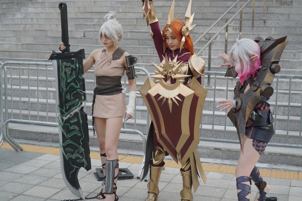 게임 축제에 빠지지 않는 코스튬 플레이어(이하 코스프레)도 쉽게 만날 수 있었다. 아리, 아지르, 레오나 등 인기 챔피언으로 변신한 코스프레 참가자는 관람객과 함께 사진을 찍으며 분위기를 달궜다.