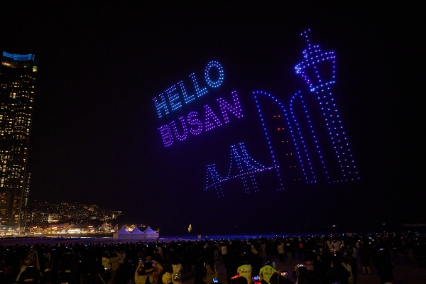 해운대 광장과 해수욕장 일대에서 열린 ‘위메이드 페스티브 나이트’는 강풍 등 기상악화로 인해 하루 연기된 지난 19일 오후 8시부터 진행되며 라이팅 드론쇼와 함께 불꽃 피날레가 진행된다.