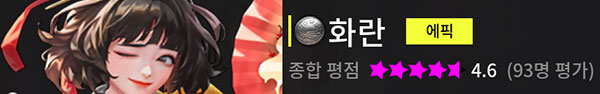 화란(에픽/평점 4.6) - 높은 딜량이 최대 강점으로서, 적이나 아군이 죽으면 포식자를 소환하는 능력도 갖추고 있다. 특히, 화염 두꺼비 최군을 소환할 수도 있다. 일정 시간 동안 기본 공격 강화와 함께 주변 아군의 스킬 재사용 시간 감소 기능도 있어 랭크 결투장에서 활약이 뛰어나다.