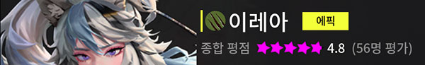 이레아(에픽/평점 4.8) - 늑대 타입으로서, 공격에 감전이 부여된다. 자기 주변으로도 전기를 방출해 상대를 감전시키며, 감전 상태의 적을 타격하면 낙뢰 공격으로 연계된다. 4등급까지는 성장시켜야 확실한 효과를 볼 수 있다.
