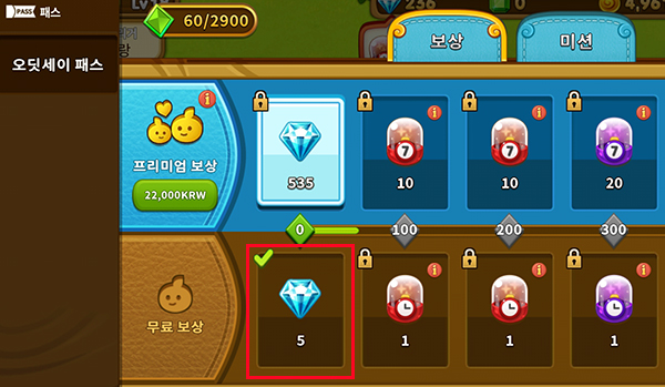 오딧세이 패스는 배틀패스와 같다. 미션을 클리어해 패스 포인트를 획득하고, 해당 단계의 보상을 획득하는 방식이다. 보석은 무료 보상 패스의 첫 번째 항목에서만 받을 수 있고, 이후 보상은 타임캡슐로 한정된다.
