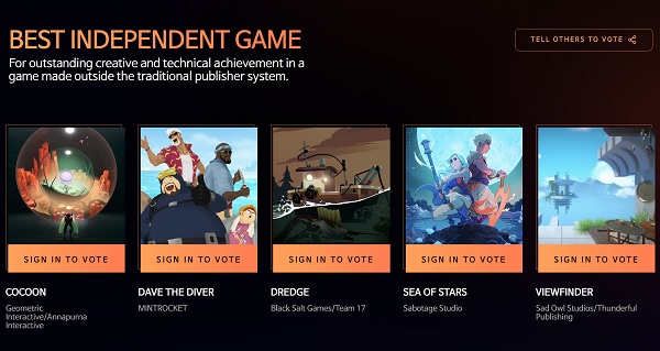 그리고 이 부문에 지오메트릭의 ‘코쿤’, 블랙솔트게임즈의 ‘드레지’, 사보타지 스튜디오의 ‘시 오브 스타즈’, 썬더풀의 ‘뷰파인더’도 오른 만큼, 각축전이 벌어질 전망이다. 이에 따라 ‘데이브 더 다이버’가 다시 한 번 수상의 영광을 안으며 2023 최고의 게임 중 하나로 등극할 수 있을지 관심이 모아진다.