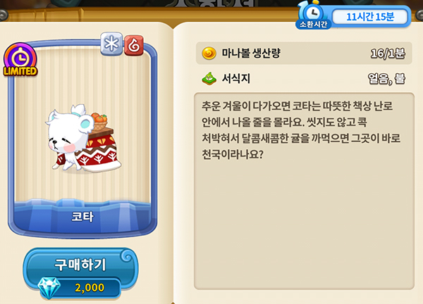 또한, 코타는 소환 이벤트에도 포함됐다. 3마리 이상부터 보석 20개를 받을 수 있다. 5마리 소환 시 보석 100개를 획득할 수 있어 소환 시간이 오래 걸리더라도 도전해 볼 만한 가치가 있다.