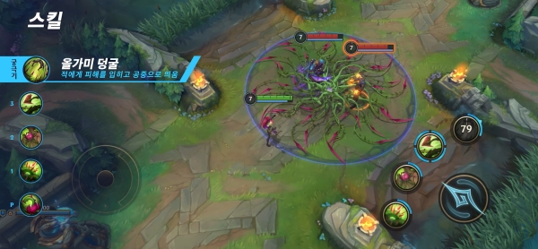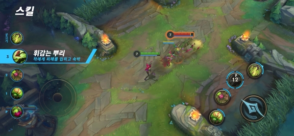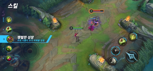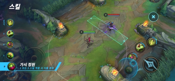 ‘와일드 리프트’에 업데이트된 자이라는 이런 특징이 강조됐다. 패시브 스킬 가시 정원은 1번(Q) 스킬과 3번(E) 스킬이 적중했을 때 식물이 생성되는 간단한 효과로 구현됐다. 스킬 연계를 조작하기 어려운 스마트폰 환경을 반영한 것으로 풀이된다.