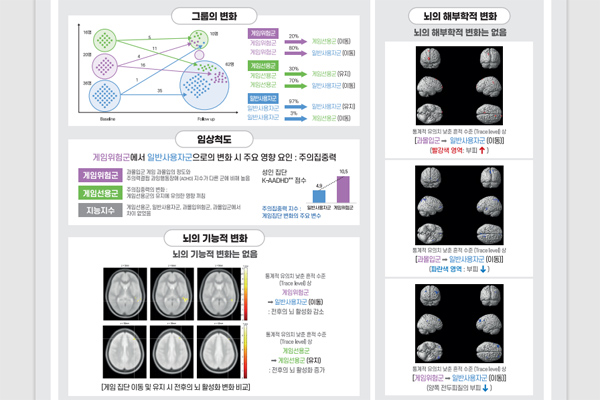 이들의 3년이라는 시간 동안 뇌의 기능적 변화와 해부학적 변화에 유의한 결과가 없었다. 다만 게임위험군에서 일반사용자군으로 이동한 성인들의 검사에서 기존에 높았던 주의력결핍 척도가 낮아진 것이 관찰되기도 했다.