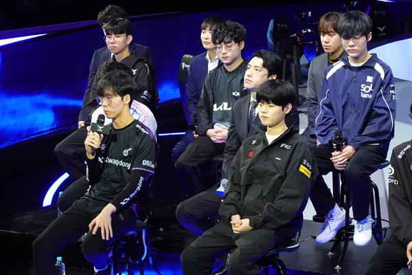 OK브리온에서는 최우범 감독과 모건 박루한, 디플러스 기아는 이재민 감독과 쇼메이커 허수, DRX는 김목경 감독과 테디 박진성이 나섰다. 이어서 피어엑스는 유상욱 감독과 윌러 김정현, 젠지는 김정수 감독과 리헨즈 손시우, 한화생명은 최인규 감독과 피넛 한왕호, 광동에서는 김대호 감독과 태윤 김태윤이 참석했다.