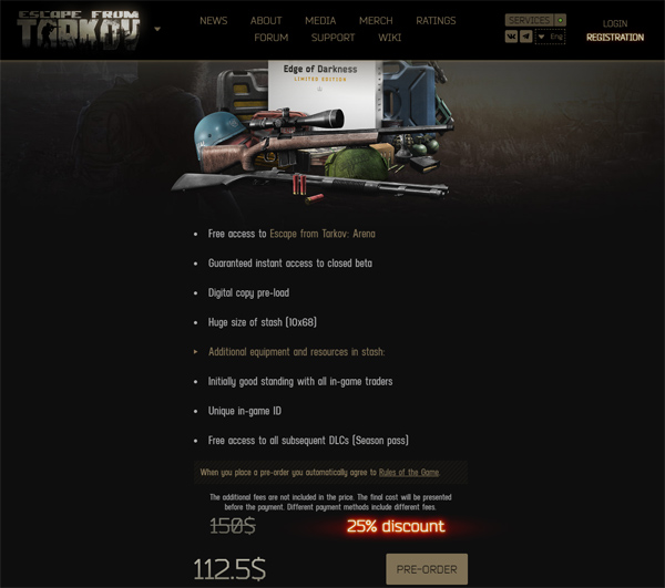 특히 패키지 할인 행사는 '타르코프' 유저들에게 쉽게 오는 기회가 아니기에 많은 유저가 몰린 것으로 풀이된다. 지난주까지 배틀스테이트 게임즈는 게임을 기본적으로 즐길 수 있는 스탠다드 에디션부터 인기 팩들의 가격을 25% 할인하는 행사를 진행했다. 특히 '타르코프'를 즐기기 위해 필수적으로 사야 된다는 EOD(Edge of Darkness) 패키지가 이번 할인을 끝으로 판매가 종료된다고 알려져 큰 관심을 받았다.