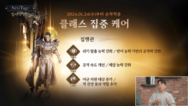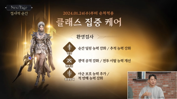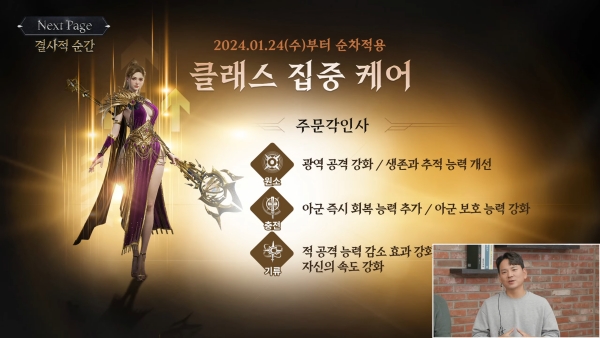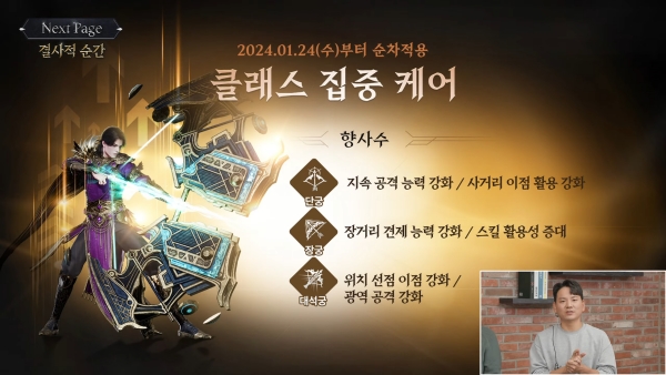 클래스 체인지는 클래스 집중 케어와 함께 진행된다. 첫 대상은 향사수다. 이후 2주 간격으로 주문각인사(2월 7일), 집행관(2월 21일), 환영검사(3월 6일)에 관련 조치가 적용될 계획이다.