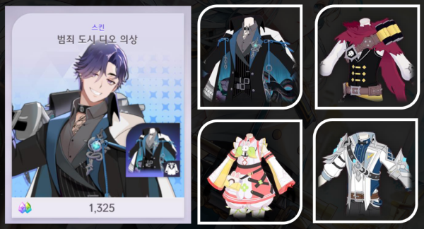캐릭터는 플레이를 통해 무료로 제공되고, 추가 스킨도 일부 무료로 획득할 수 있다. 특정 스킨은 조각을 모아 스킨을 완성하는 형태다. 예컨대 3개의 파츠 중 몇 개 파츠는 조각을 모으는 방식이다. 스킨은 ‘럭키박스’라 불리는 가챠로도 획득할 수 있는데, 캐시로 구매한 가챠의 스킨은 완성품 형태로 제공된다. 확률형 아이템이 최근 사라지는 추세지만, 합당한 확률로 가챠를 제공할 예정이다.