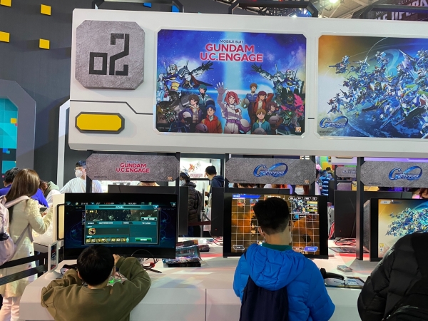 부스에는 '파이널 판타지 7 리버스', '드래곤 퀘스트 10 다섯 종족의 각성', '에이스컴뱃 7: 스카이 언노운', '철권 8', '나루토 X 보루토 나루티밋 스톰 커넥션즈', '샌드랜드', '주술회전 전화향명' 등 유명 IP 신작으로 가득채워졌다.
