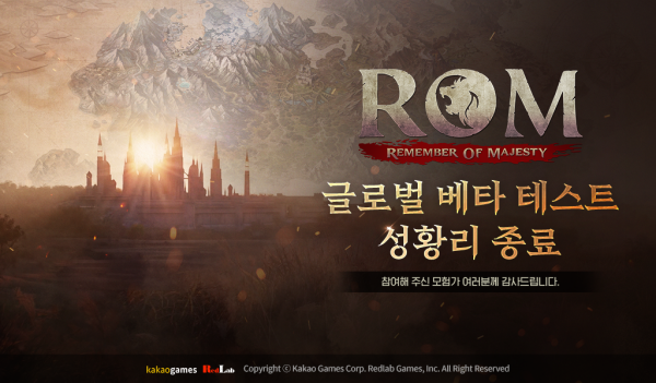 레드랩게임즈(대표 신현근)는 자사가 개발하고 카카오게임즈(대표 조계현)와 함께 서비스 예정인 신작 하드코어 MMORPG ‘롬: 리멤버 오브 마제스티(이하 롬)'의 글로벌 베타 테스트를 성황리에 종료했다고 26일 밝혔다.