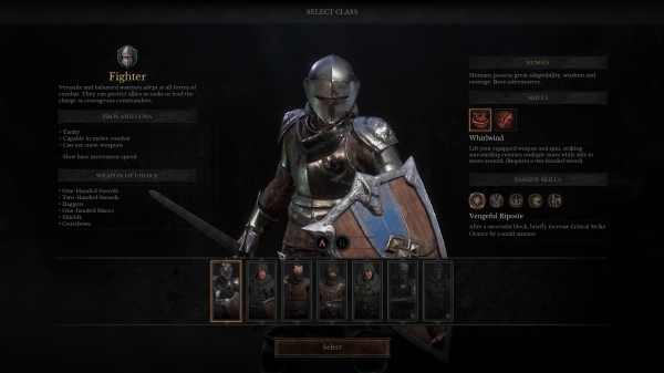 클래스 시스템을 채택한 '던전본'은 파이터, 프리스트, 로그 등 다양한 직업이 준비됐다. 아직 개방되지 않은 2가지 직업은 테스트 기간이 지남에 따라 순차적으로 오픈한다. 직업에 따라 사용할 수 있는 스킬이 다르며, 최소 1인부터 3인까지 파티를 구성할 수 있기에 직업의 조합이 중요하게 작용한다.