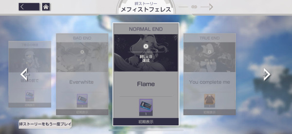 여기까지는 공통된 시스템 요소이다. 주목해 주었으면 하는 것은 인연 이야기의 내용이다. 많은 삽화가 삽입된 유대 스토리의 화려한 구성에 더해, 대화 중간에 "이후의 전개에 영향을 미치는 선택"도 표시된다.