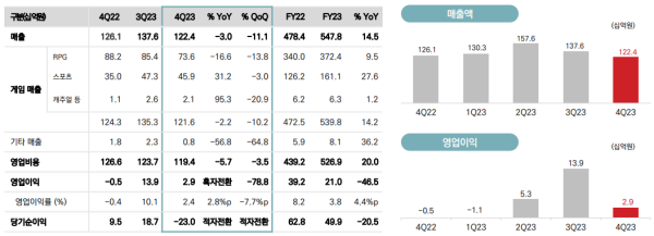 컴투스가 2023년 4분기 및 연간 연결 실적을 발표했다.
