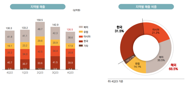 지역별 매출에서는 해외에서 866억원, 국내에서 399억원을 기록했다. 각각 전년 대비 3.4%, 2.1% 감소했다. 해외 매출 비중이 높은 RPG 장르 매출이 감소한 결과다. 대신 북미와 아시아, 유럽 등 대부분의 지역에서 안정적인 매출 분포를 기록했다.