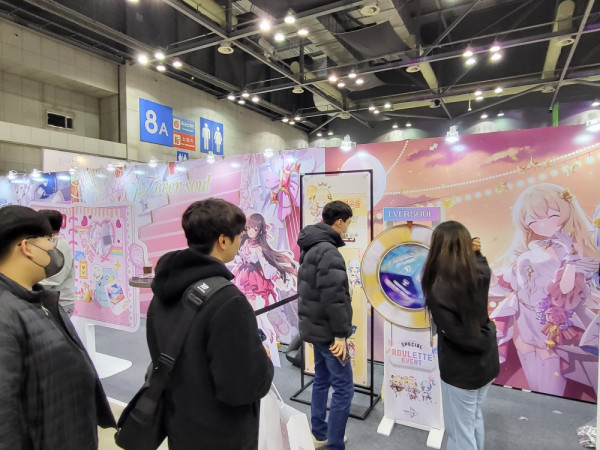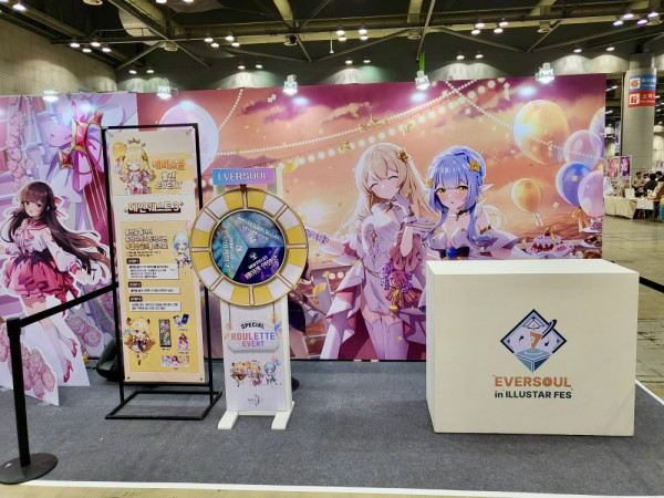 현장에는 룰렛 이벤트를 통해 에버소울 일러스트가 그려진 ‘아크릴 스탠드’, ‘장패드’, ‘아크릴 키링’ 등을 제공한다.