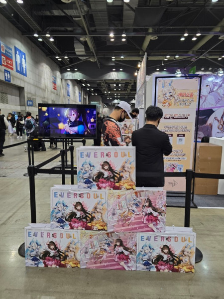 일산 킨텍스에서 열리고 있는 '제3회 일러스타 페스'에 참여한 카카오게임즈가 17일, '에버소울' 부스를 마련하고 관람객을 맞이하고 있다.