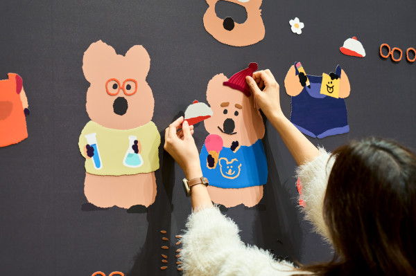 1층 팝업 공간에 들어서면, 쿼카 친구들의 첫 등교 룩을 코디할 수 있는 옷 입히기 놀이존뿐 아니라 쿼카 친구들과 함께 등교 인증샷을 남길 수 있는 스쿨버스 포토존, 교실에서 몰래 과자를 먹거나 마쉬멜로 높이 쌓기 놀이를 하는 쿼카 친구들의 장난기 가득한 모습을 담은 교실 포토존 등으로 실제 쿼카 학교에 온 듯한 분위기를 제공한다.