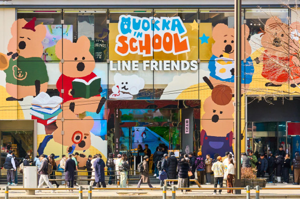 이번 팝업 스토어는 새학기를 맞은 쿼카 친구들과 함께 우당탕탕 재밌는 에피소드로 가득한 학교 생활을 직접 체험해 볼 수 있도록 구성됐다. 외관에서부터 나팔을 불고 독서와 농구를 즐기는 쿼카들의 장꾸스러운 매력이 팝업 스토어로 구성됐다.