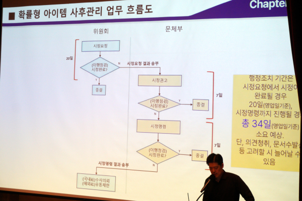 해외 사업자의 경우에는 플랫폼 사업자를 통해 유통 제한을 추진한다. 그리고 법령 예외사항에 대해서는 이용자 권익을 고려해 영향이 크다고 판단하면, 문체부 별도 고시를 통해 사후관리 대상화를 진행한다. 더불어 사업자 대상 소통 채널과 유저 대상 제보 채널도 운영된다.