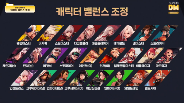 3월에는 모든 캐릭터의 밸런스 조정도 진행한다. 리뉴얼이 아닌 밸런스 조정으로서, 업데이트 방향은 최근의 밸런스 추세에 맞춘다. 즉, 강한 캐릭터를 하향하는 것이 아닌 하향 캐릭터들을 상향 캐릭터에 맞춰 균형을 맞춘다. 대부분 스킬 효과를 조정하는 방식으로 상향할 예정이다.