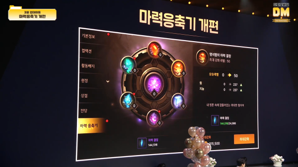 마력응축기는 재료로 사용되는 마력 결정을 얻기 위해 많은 시간이 소모됐다. 이제 게임플레이만으로 자연스럽게 마력응축기를 최대 강화할 수 있도록 개편된다. 기존에 마력응축기를 최고 레벨로 달성한 유저의 경우 남은 마력 결정 숫자에 따라 페라로 1대 1 교환해 줄 예정이며, 3월 중에 업데이트된다.