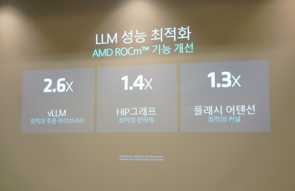 ROCm은 6버전을 올해 출시한다. 고급 대규모 언어모델(LLM)에 최적화된 기능과 고성능 AI 라이브러리, 확장된 생태계를 지원한다 이를 통해 vLLM은 2.6배, HIP 그래프는 1.4배, 플래시 어텐션은 1.3배 개선된다. Llama 2 70B 추론 테스트에서는 이전 세대 대비 8배 향상된 것으로 나타났다.