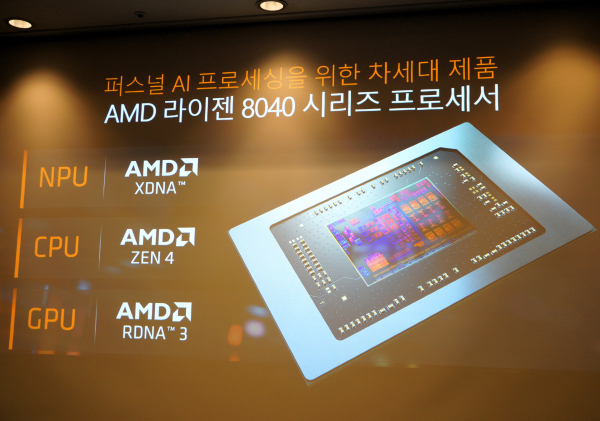 2023년 피닉스로 명명된 라이젠 AI 프로세서 발표 이후 이를 탑재한 다양한 제품이 출시된 바 있는데, 이번에 4나노 공정으로 설계된 라이젠 8040 시리즈 프로세서를 선보일 예정이다. 이를 통해 프리미엄 성능을 경험할 수 있게 된다. 이 제품은 이전 7040 시리즈 대비 Llama 2와 비전 모델에서 1.4배 성능 향상이 확인됐다.