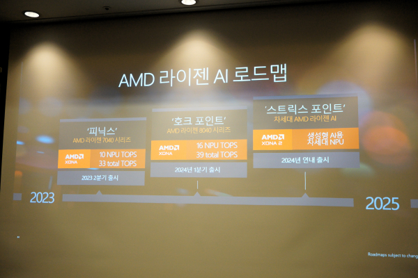 AMD는 작년 AI 프로세서 시대를 연 피닉스를 공개했고, 올해 출시되는 호크 포인트는 성능의 향상을 추구했다. 그리고 올해 말 출시될 차세대 라이젠 AI 제품인 스트릭스 포인트에는 기존 대비 3배의 생성형 AI NPU 성능을 보유한 XDNA 2 기술이 탑재될 예정이다. 이처럼 AMD는 라이젠 AI를 통해 퍼스널 AI 컴퓨팅의 시대를 선도하겠다고 밝혔다.