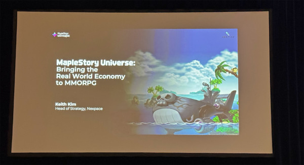 넥슨페이스 김정헌 전략 헤드는 '메이플스토리 유니버스: 현실 세계 경제를 MMORPG로 가져오다' 주제로, 20년 이상의 역사를 가진 온라인 RPG '메이플스토리'에 NFT 요소를 더한 신작 '메이플스토리N'의 경제 메커니즘 강연을 진행했다.