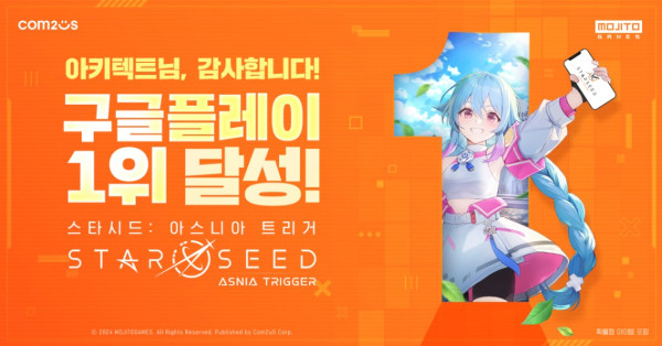 컴투스(대표 남재관) 신작 ‘스타시드: 아스니아 트리거(STARSEED: ASNIA TRIGGER, 이하 스타시드)’가 출시 하루만에 구글 플레이스토어에서 인기 게임 순위 1위에 올랐다고 29일 밝혔다.