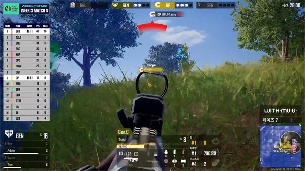 치킨은 하나도 없었지만, 오로지 킬로 점수를 쌓은 젠지의 광폭행보가 지속됐다. 특히 매치4에서는 16킬로 체급에서도 우위를 보여줬고, 전반적으로 지난 2주차 우승 이후 예사롭지 않은 기세로 다른 프로팀들을 압도했다.