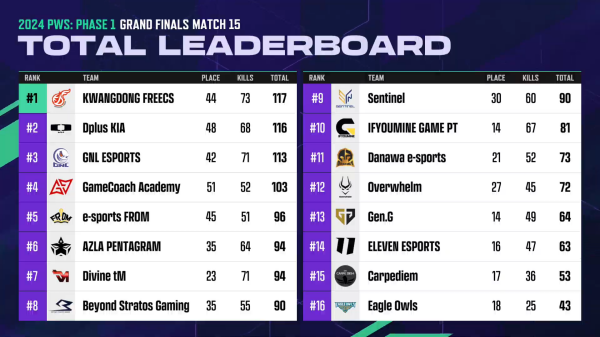 광동 프릭스가 1포인트 차이로 디플러스 기아를 따돌리며, ‘PUBG 위클리 시리즈 페이즈 1’의 주인공으로 등극했다.