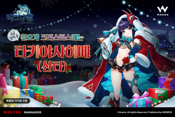 - 웹젠(대표 김태영)이 수집형RPG ‘라그나돌: 사라진 야차 공주(이하 라그나돌)’에서 신규 캐릭터 ‘타키야샤히메 산타’를 선보인다. 신규 캐릭터 ‘타키야샤히메 산타’는 쌍검과 암기를 무기로 사용하는 야샤국 소속의 ‘물리 재머’ 캐릭터다. 전투 중 카드 합성 횟수를 일정 시간 동안 1회 증가시키는 캐릭터 고유 능력을 보유하고 있다.