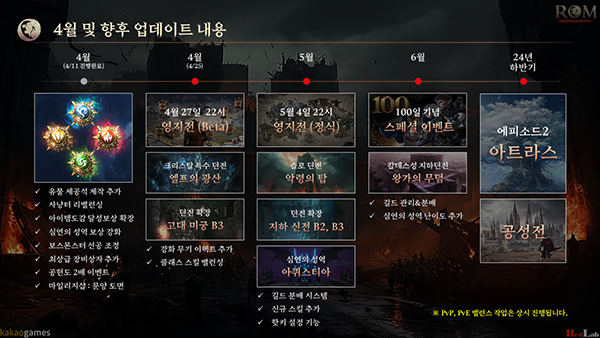 ▲6월에는 100일 기념 '스폐셜 이벤트'를 진행하고, 칼데스성 지하무덤 '왕가의 무덤'이 추가된다. 24년 하반기에는 에피소드 2 '아트라스'와 공성전이 준비 중이다.