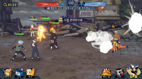 이렇게 다양한 미사여구로 광고를 했지만, 실제로 출시된 게임은 3D 캐릭터 기반의 그래픽을 갖춘 방치형 RPG로 드러났다. 우즈마키 나루토와 우치하 사스케, 하루노 사쿠라 등 원작의 많은 캐릭터들이 게임에 등장하고, 전투를 할 땐 원작의 애니메이션에 등장한 성우의 음성이 나오는 것으로 확인됐다.