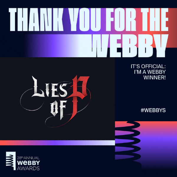 네오위즈 관계자는 “‘인터넷의 오스카상’으로 불리는 웨비 어워드에서 3관왕이라는 쾌거를 거둬 무척 기쁘다”며 “P의 거짓에 투표해주신 글로벌 이용자분들에게 수상의 기쁨과 감사를 전한다. 응원에 힘입어 DLC와 차기작을 탄탄히 준비해 나갈 것”이라고 말했다.
