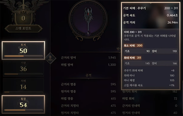 투지와 통찰은 최소 피해와 최대 피해를 동시에 올려준다. 또한, 투지는 방어 관련 수치도 올려준다. 적의 공격에 대응하는 주요 수단은 방어와 회피다. 방어 쪽에 중시한다면 투지를 눈여겨보자.