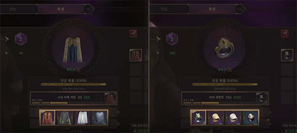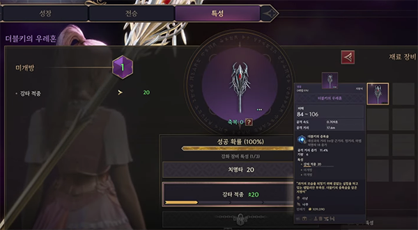 이미 개방된 특성은 장비 강화처럼 특성 단계를 강화해 나갈 수 있다. 고급 등급은 2단계, 희귀 등급은 3단계, 영웅 등급은 4단계까지 강화된다.