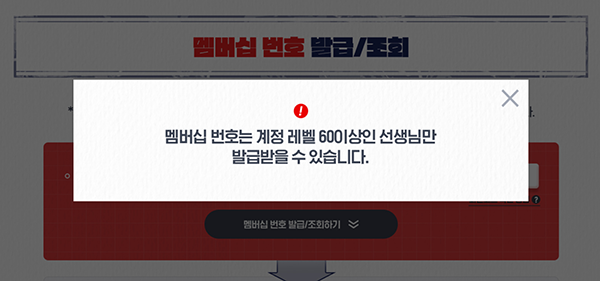 60레벨 이하의 유저가 멤버십 발급을 시도할 경우 '멤버십 번호는 계정 레벨 60 이상인 선생님만 발급받을 수 있다'는 메시지로 게임을 즐기지 않는 일반인의 접근을 차단했다.