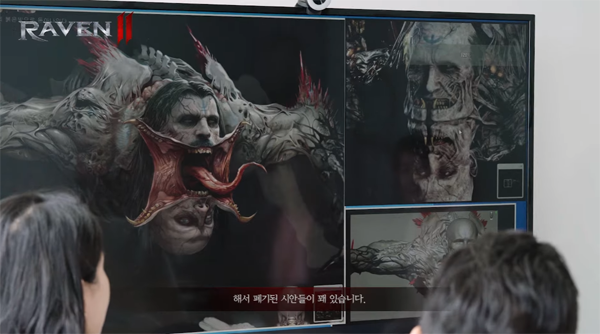 신동찬 넷마블몬스터 아트디렉터는 가장 먼저 영상에 등장해 아트 관련 설명을 진행했다. 그는 "레이븐2는 악의 영역에서 온 존재들로 인해 고통받는 세계를 그려낸 다크 판타지다"며 "이 다크함을 꽤 강하게 가져가고 싶어서 프로젝트 시작부터 철저하게 청불등급으로 디자인했다"고 밝혔다.