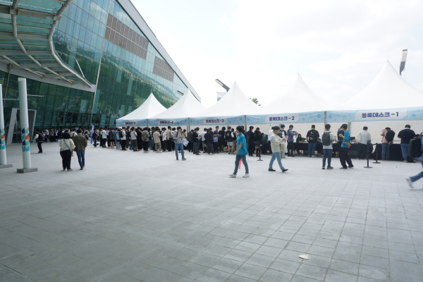 이번 행사는 킨텍스 제2전시장 9관에서 진행된다. 따라서 전시장 뒷편에 마련된 공간을 등록 및 대기 공간으로 활용했다. 이른 아침부터 많은 유저들이 줄을 서서 등록을 기다리고 있었다.