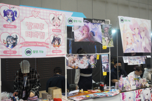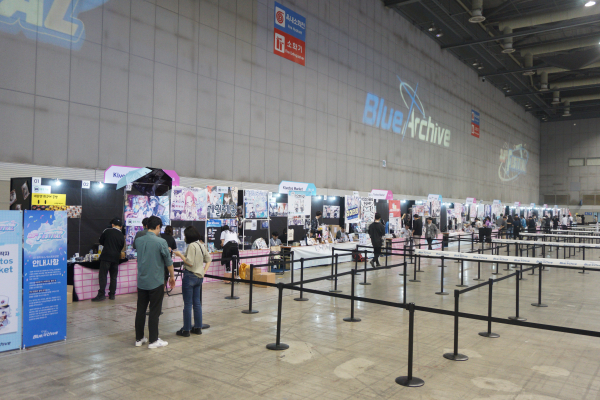전시장 왼쪽에는 '블루 아카이브'를 기반으로 한 2차 창작물의 전시와 판매가 이뤄지고 있었다. 양일간 각각 50여개 씩 100여개의 부스가 참여해 자신들이 만든 굿즈를 뽐내게 된다.