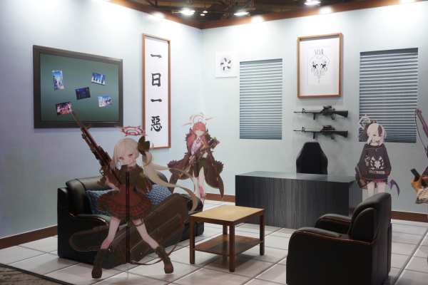 관람객들이 기념사진을 찍을 수 있는 포토존도 마련됐다. 여기에는 게임 내 공간인 동아리 '흥신소 68'의 사무실, 선생님이 집무를 보는 '샬레'의 집무실 등 두 가지의 공간이 있었다.