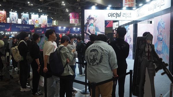 올해 '이터널리턴' 부스는 체험존과 굿즈샵으로 운영됐다. 특히, 체험존에서는 원활한 질서를 위해 한 그룹의 게임이 끝나면, 다음 그룹이 순차적으로 입장해 방해 받지 않고 게임을 즐길 수 있도록 배려했다.