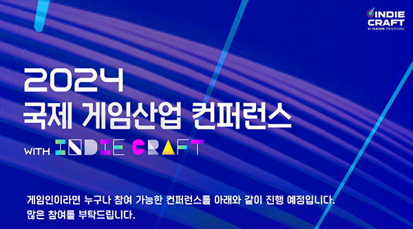 글로벌 인디게임 축제 ‘2024 인디크래프트’의 첫 번째 행사인 '2024 국제 게임산업 컨퍼런스 with INDIECRAFT'의 연사자 세부 프로그램이 공개됐다.