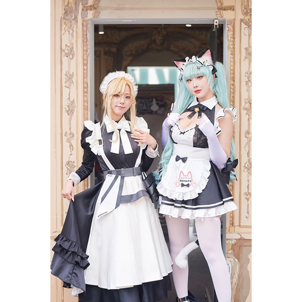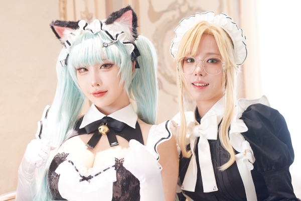 지상 에너지 카페 입구에서는 슈마 에이드와 야살 프리바티메이드가 지휘관을 맞이했다.