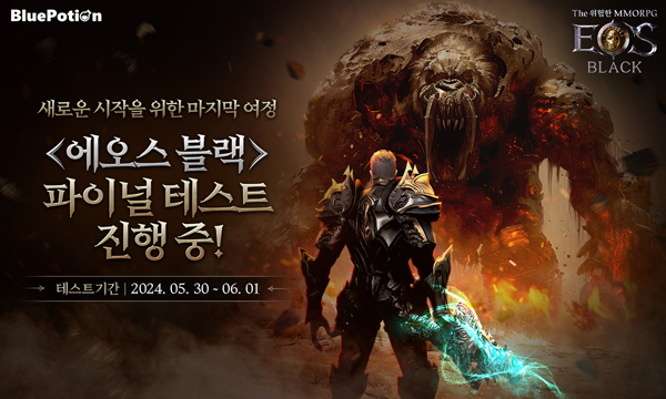- 블루포션게임즈는 에오스 레드의 정규 후속작인 MMORPG '에오스 블랙'의 파이널 테스트를 시작한다고 30일 밝혔다. 상반기 출시를 앞두고 있는 '에오스 블랙'은 지정 거래와 거래소를 기반으로 하는 자유 경제를 구현하고, 고객 자산 가치 하락 방어를 위한 업데이트 기조로 서비스를 제공할 계획이다. 특히, 무소과금으로도 부담 없이 즐길 수 있는 착한 BM과 적극적인 소통 및 신뢰를 기반으로 한 유저 친화 서비스는 '에오스 블랙'의 서비스 철학이 담겨 있어 게이머들의 기대감이 높다.